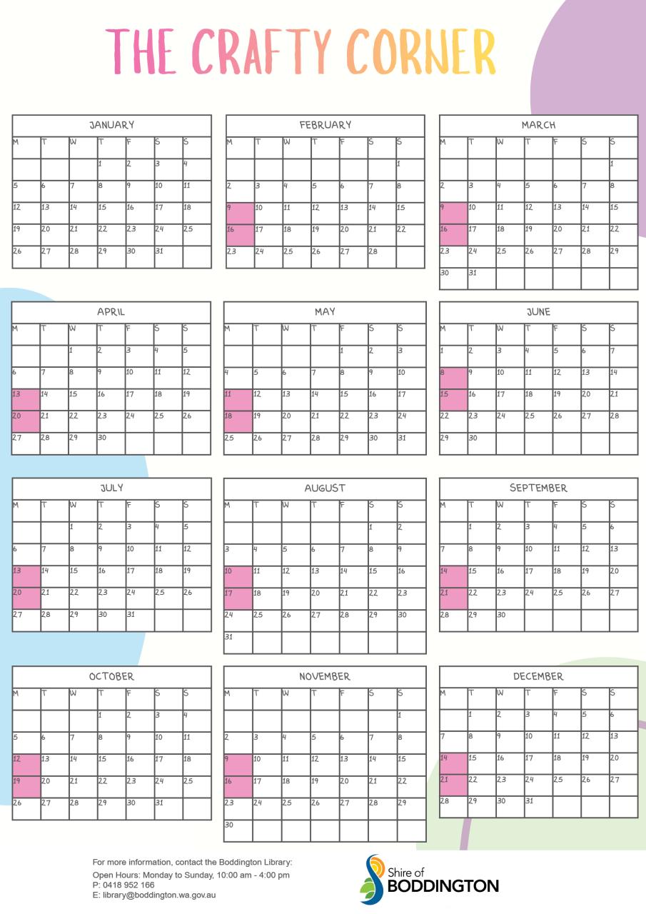 Click here for upcoming Crafty Corner dates.